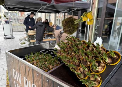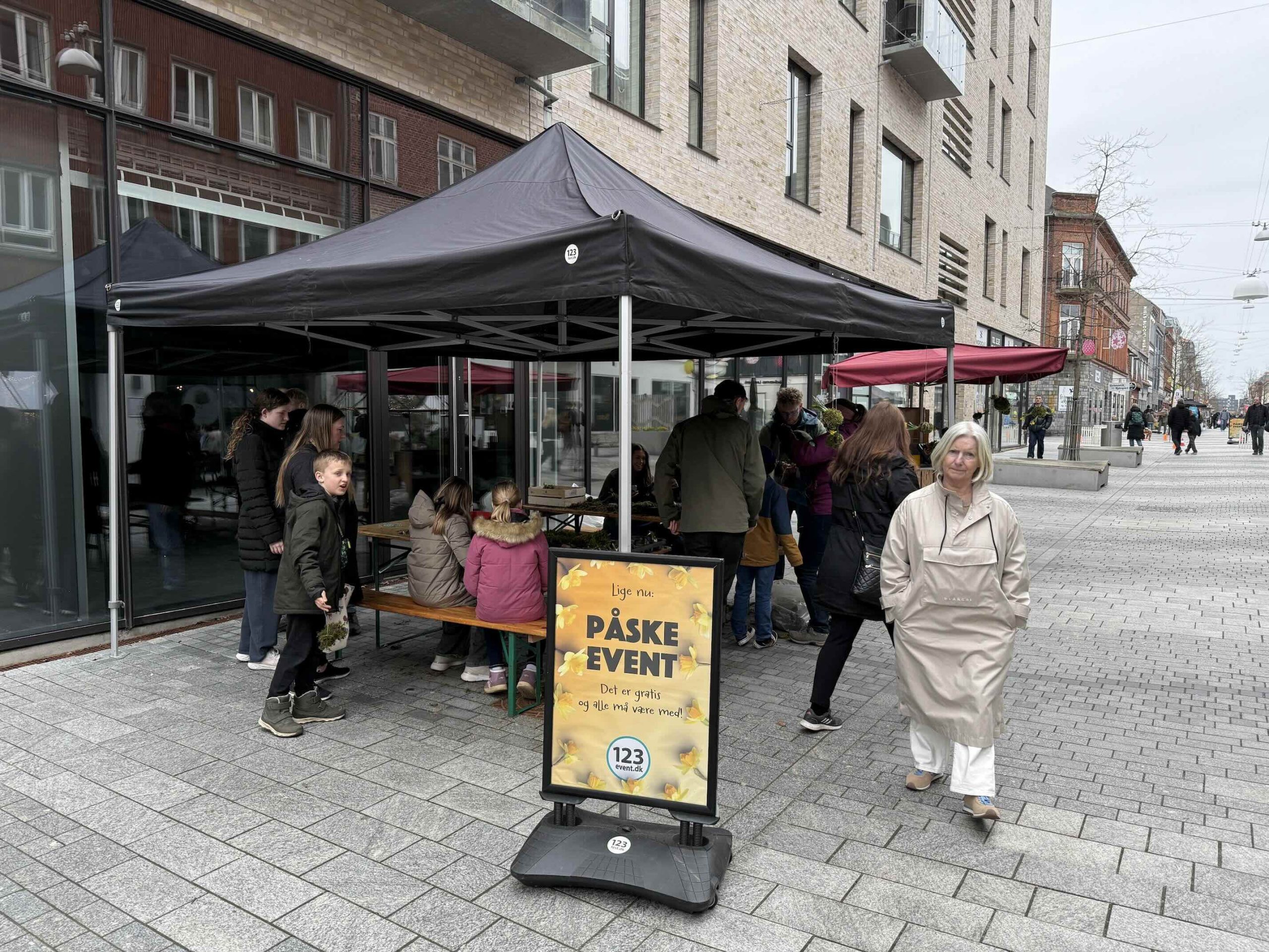 Vi har som udgangspunkt plads til ca. 15-20 personer ad gangen, hvilket betyder at vi kan få op til ca. 100 personer igennem i timen. På en 3 timers event fra e.sk kl. 10-13 eller måske kl. 15-18, kan vi få op til ca. 300 personer igennem eventet – og altså lave over 300 påskeblomster.
