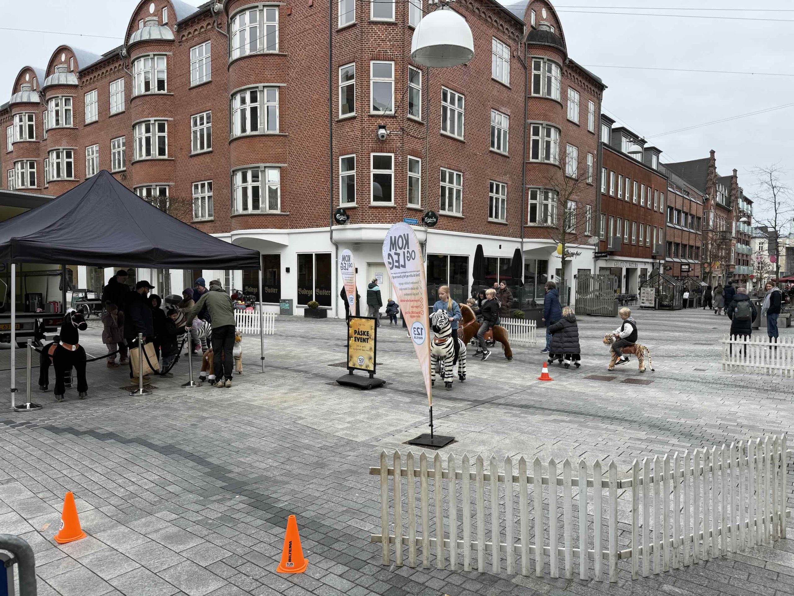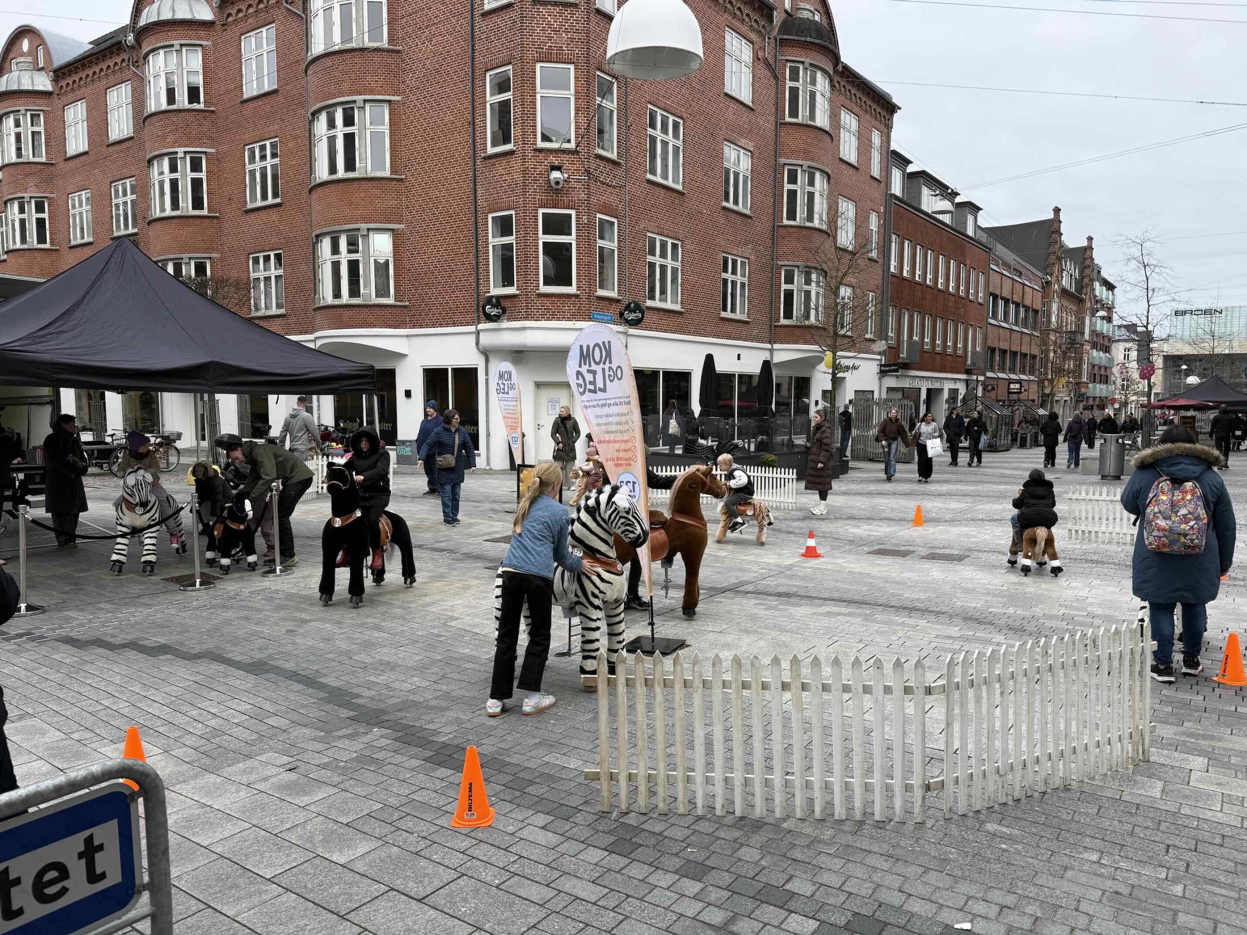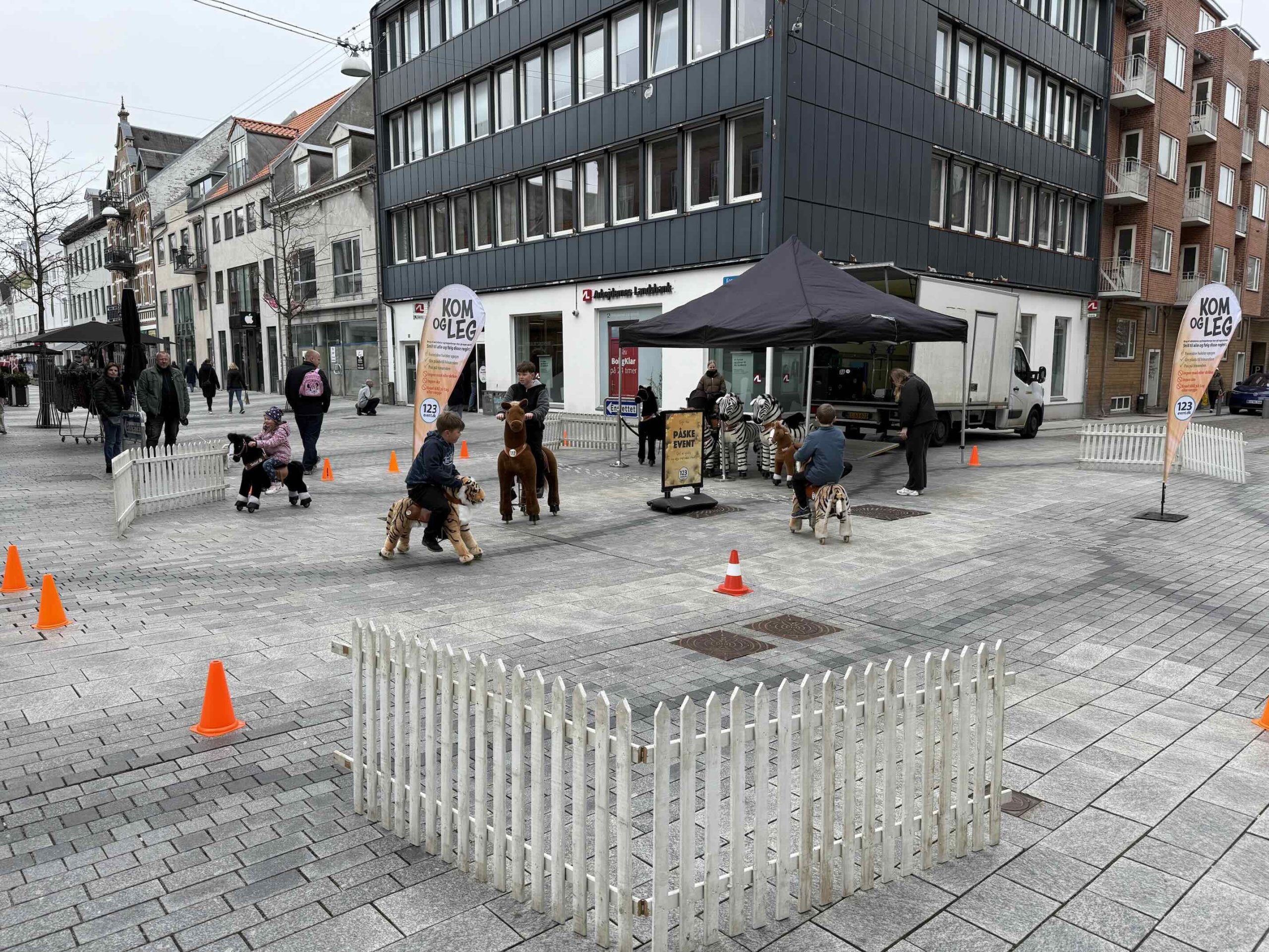 På ryggen af et stort tøjdyr med rulleskøjte-hjul “ridder” du afsted. Vi kan lave flere sjove aktiviteter med dem, men som standard laver vi en bane med sving og forhindringer.