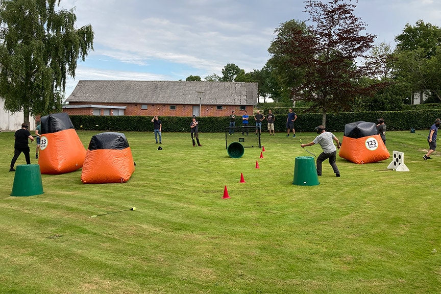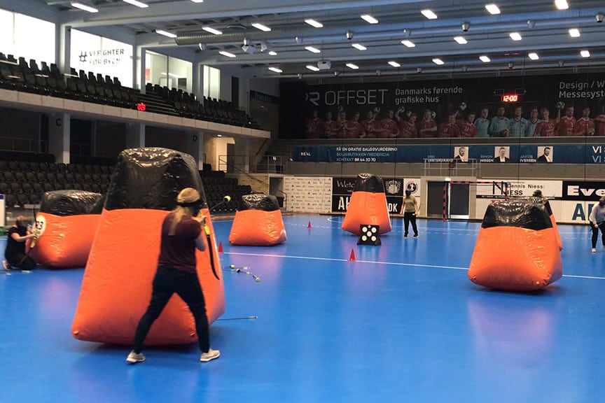 Alle vores Bow Combat Komplet events indeholder som standard en total komplet bane med forhindringer, gemmesteder, scoreboards, kegler, 10 buer, 20 pile, 10 masker og opsætning og nedpakning.