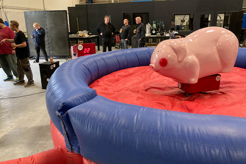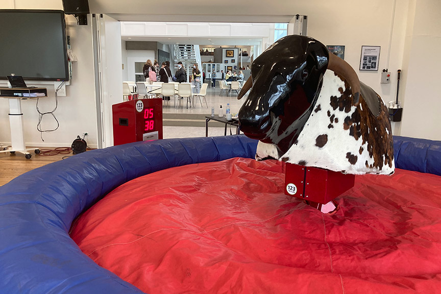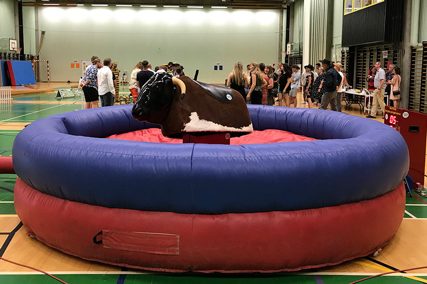 Den klassiske rodeotyr er simpelthen bare sjov! Vi har nye maskiner med stærkere motor, som gør turen sjovere og mere sikker – og så kan vi med vores model styre tyren helt manuelt, hvilket gør at vi kan lave unikke ture, så ALLE kan prøve!